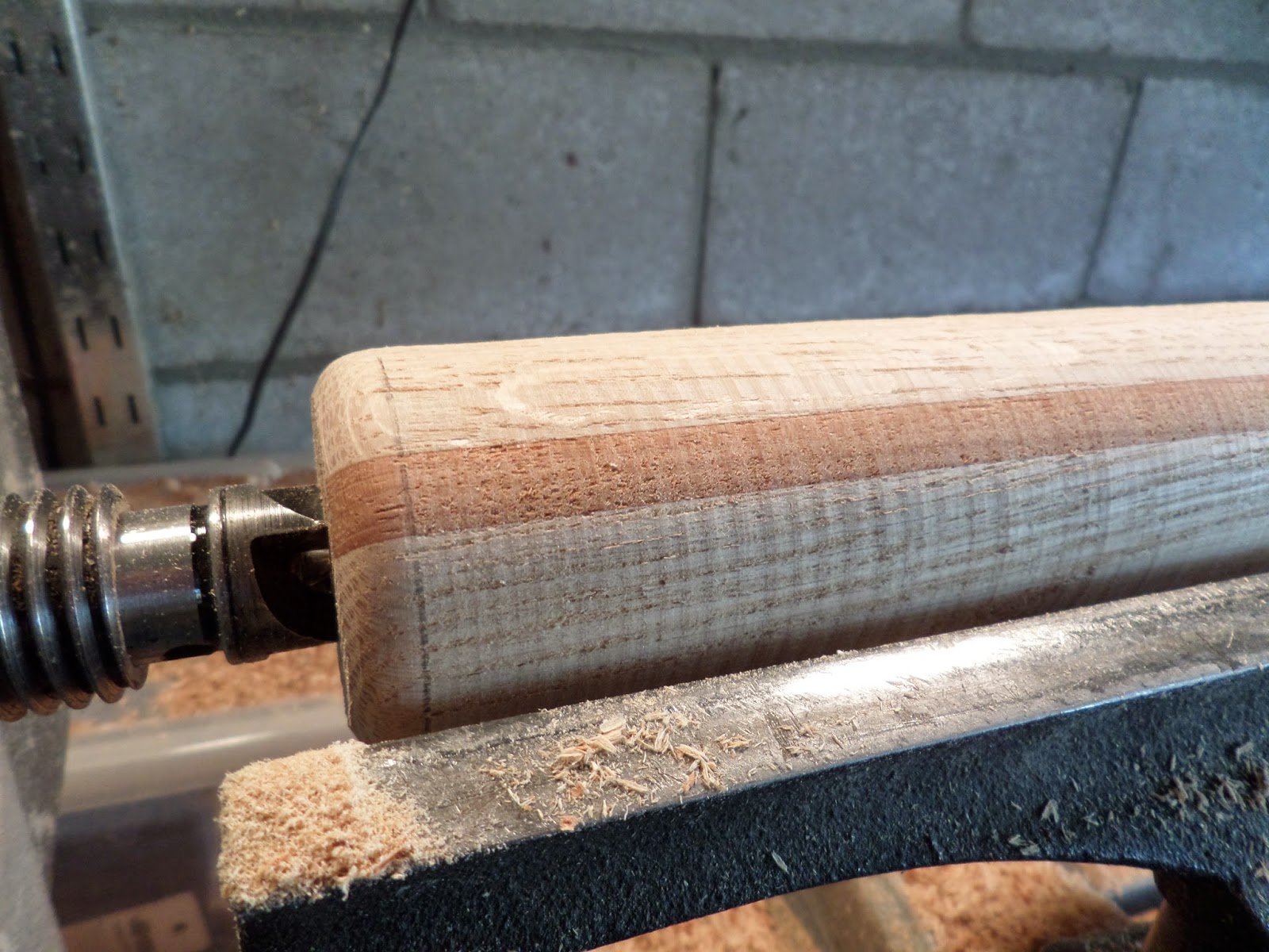 I think the servers he makes are pretty cool and so I decided to try the ill-fated, never accomplished coffee scoop project from several years ago and no wanting to be wasteful, I decided to use the rolling pin that began to de-laminate several days ago and make a scoop out of it.